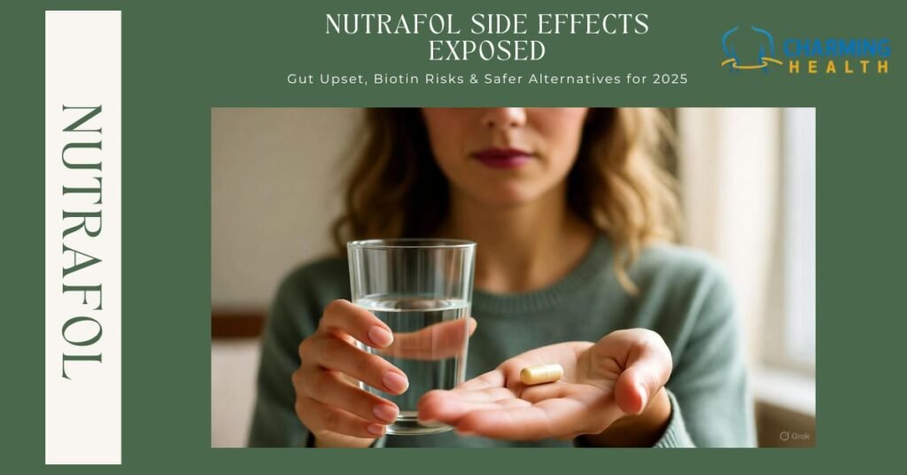 Hair growth supplement risks like those tied to Nutrafol side effects often mask deeper health culprits. Think thyroid imbalances PCOS or nutrient deficiencies mimicking simple thinning. In 2025 experts warn that biotin hair pill reactions like false thyroid readings can delay diagnoses per Mayo Clinic updates. If shedding exceeds 100 strands daily or patches appear uneven it signals more than stress. Anemia or autoimmune flags come up. Natural hair loss treatment drawbacks amplify this. Overloading on saw palmetto might skew hormones worsening PCOS symptoms. At Charming Health we link these dots via blood panels ensuring supplements don’t exacerbate issues like liver strain from high-dose botanicals. Don’t DIY. Early intervention prevents progression to irreversible follicle miniaturization.