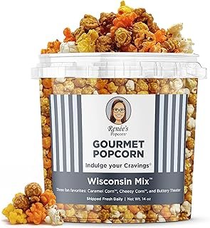 4 ![]() | Renée’s Wisconsin Mix™ Gourmet Popcorn | Handmade mix of caramel crunch, Wisconsin cheddar cheesy, and buttery theater flavors in a 14 oz bulk party tin. |